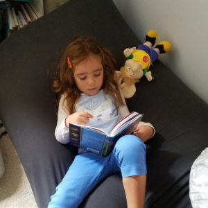 Books have been a major part of our child’s life since her first week of life. We have read her several books a day from the time she was a wee little thing. I believe that habit has been one of the reasons she has become such a strong reader.